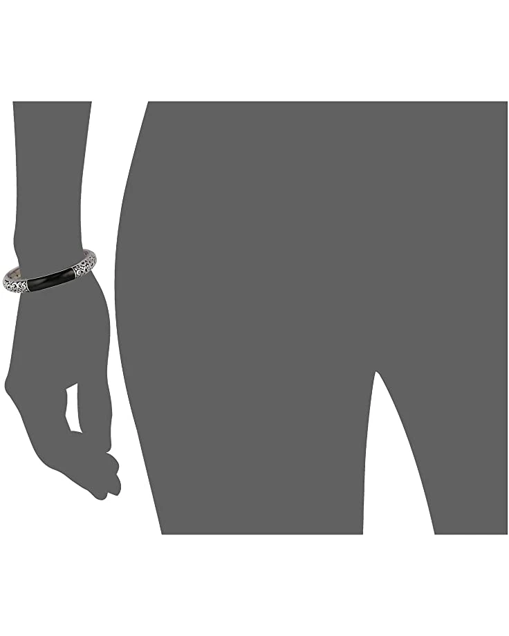 - The Brighton® Catania Hinged Bangle is constructed of curved bars of smooth black enamel or gold-plating are flanked by feminine scrolls on this hinged bangle. Its oval shape lends comfort and ease of wear.