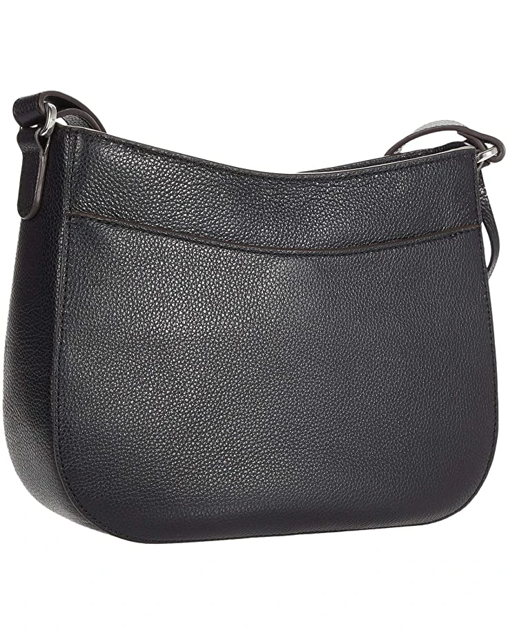 - Lined interior features back-wall slip pockets, front-wall zip pocket, and key fob.