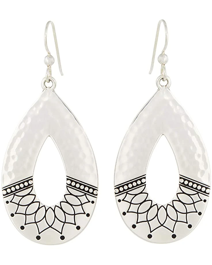 - Add something unique to your style wearing these Brighton® earrings featuring a hammered silver plating with an intricate engraved accent.