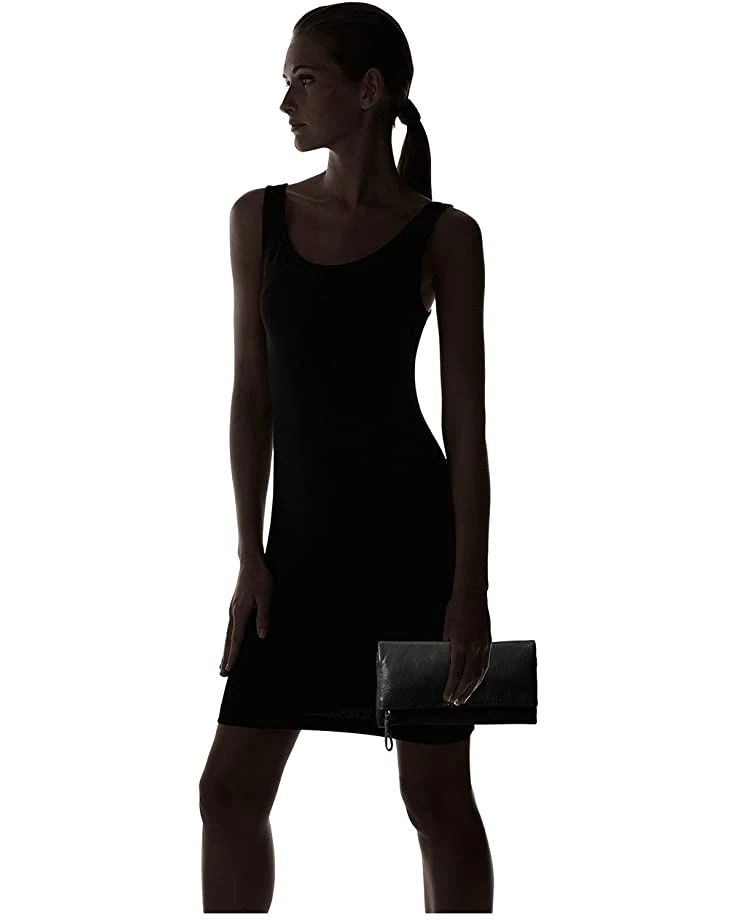 - Interior lining with 11 card slots, three slip pockets, and an ID window.