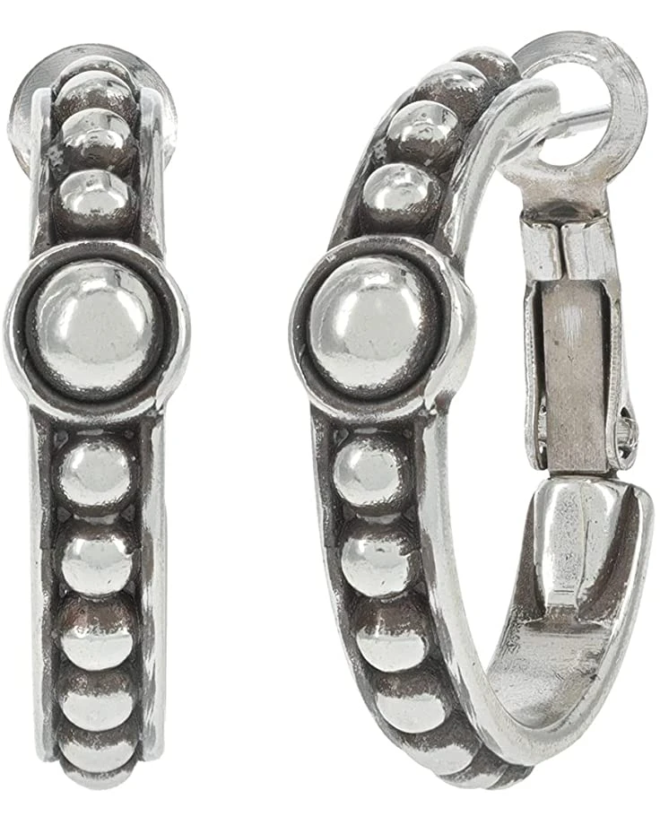 - The Brighton® Pretty Tough Hoop Earrings are inspired by the modern spirit of the Pretty Tough leathers, the stud ornamentation is translated into silver sculpted beading that outlines this pretty jewelry.