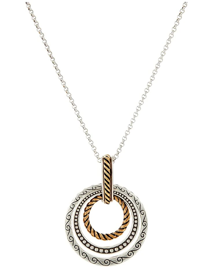 - Designed to enrapture the wearer – and anyone who looks at it – this two-toned pendant necklace with its trio of rings is decidedly contemporary.