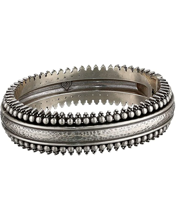 - At once elegantly sporty and lively, this jewelry collection offers two old-world handcrafting techniques–hammering and granulation. This hinged bangle lends an instant Boho vibe to your look.
